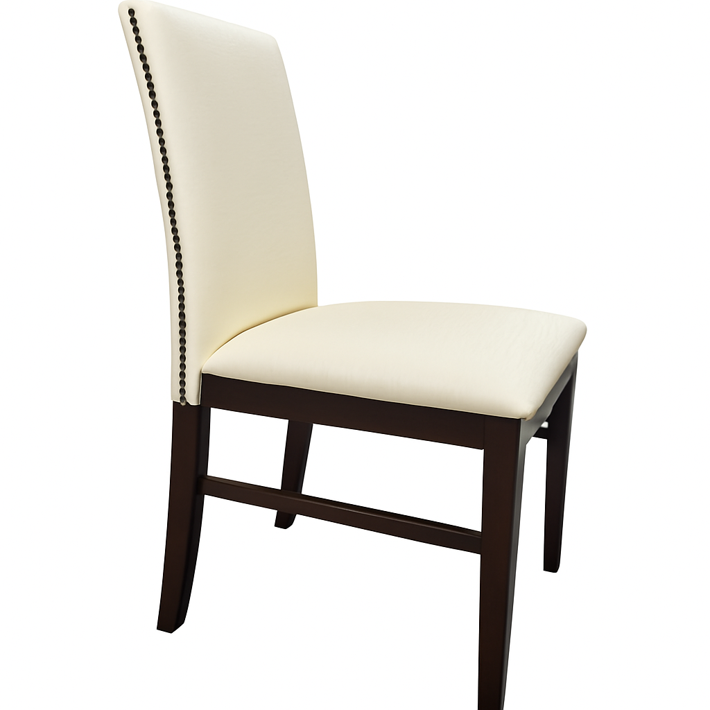 Elevate your dining or hospitality space with the Bellamy Side Chair — where understated elegance meets performance-grade practicality. Wrapped in a creamy, textured upholstery that whispers luxury, this chair features a gently arched back with hand-applied nailhead trim that delivers just the right hint of drama. Its rich espresso-finished frame adds warmth and contrast, while the cushioned seat invites hours of effortless comfort.