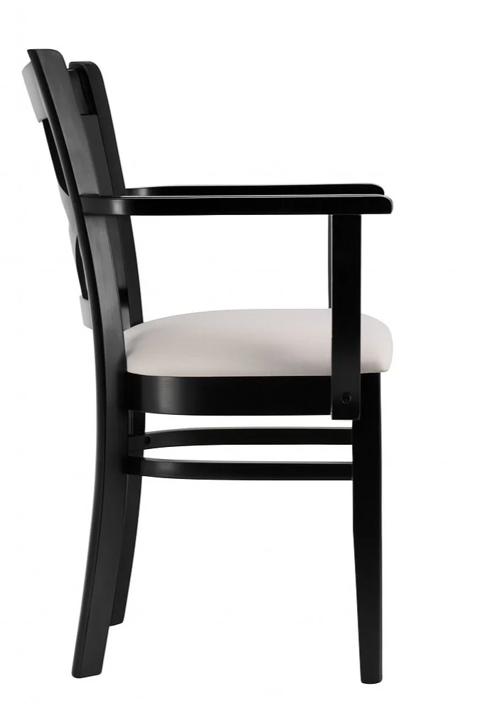 This armchair features a sturdy solid beech wood frame with matching solid wood legs and a stylish cross back design. Upholstered in genuine leather and filled with foam for comfort, it includes arms, does not swivel, has no wheels or casters, and supports up to 300 pounds. Only one chair is included.