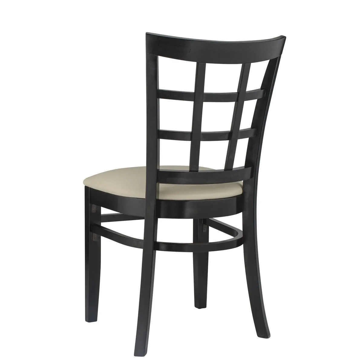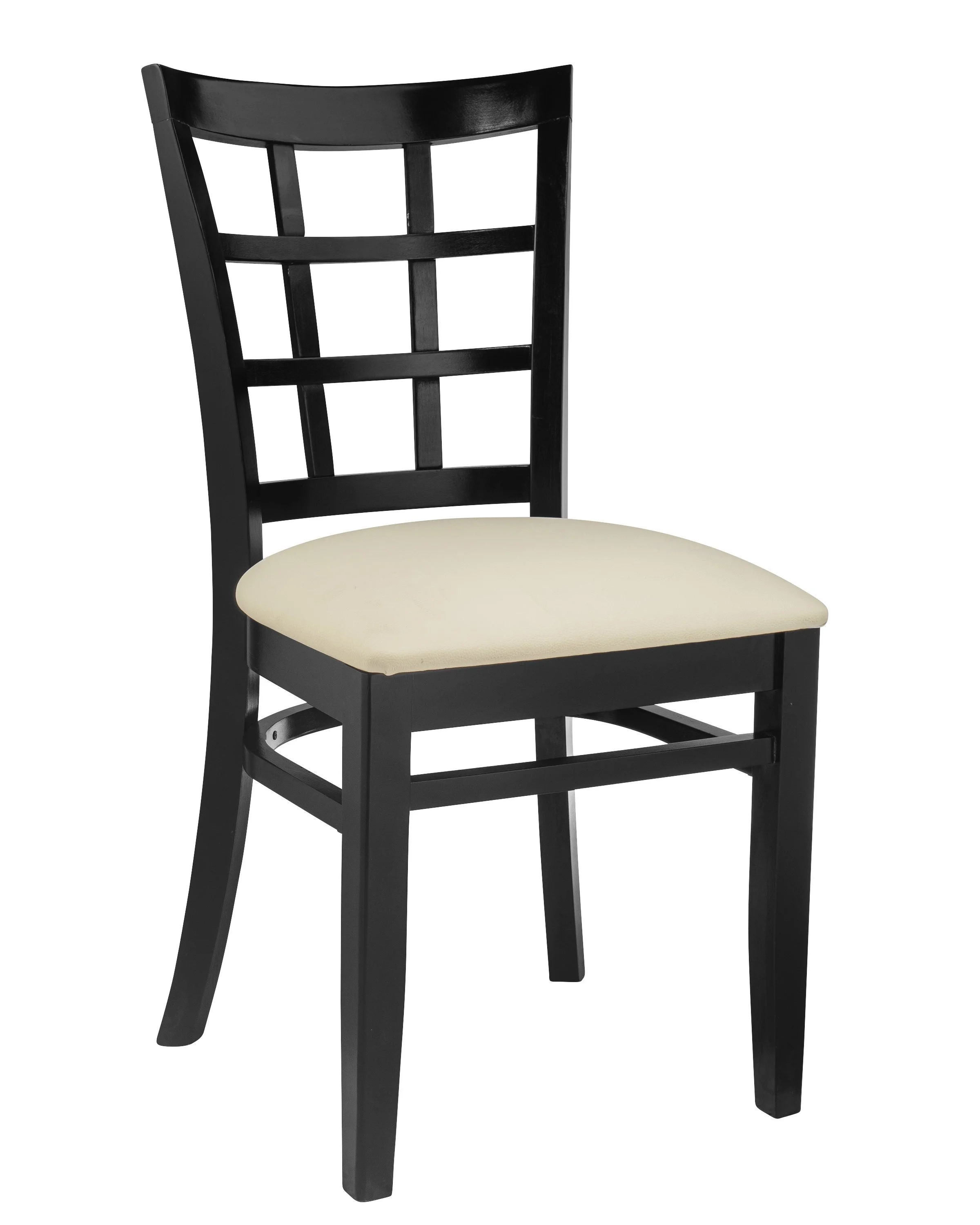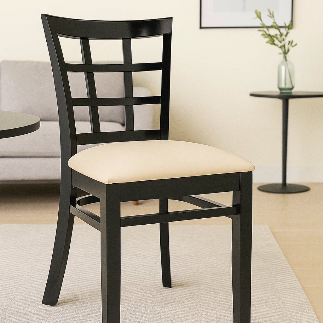 Sleek, strong, and effortlessly stylish — this grid-back dining chair is designed to make a lasting impression. Crafted from solid European beechwood, its elegantly contoured frame and bold black finish are matched with a soft, ivory-hued cushioned seat that provides both comfort and contrast.