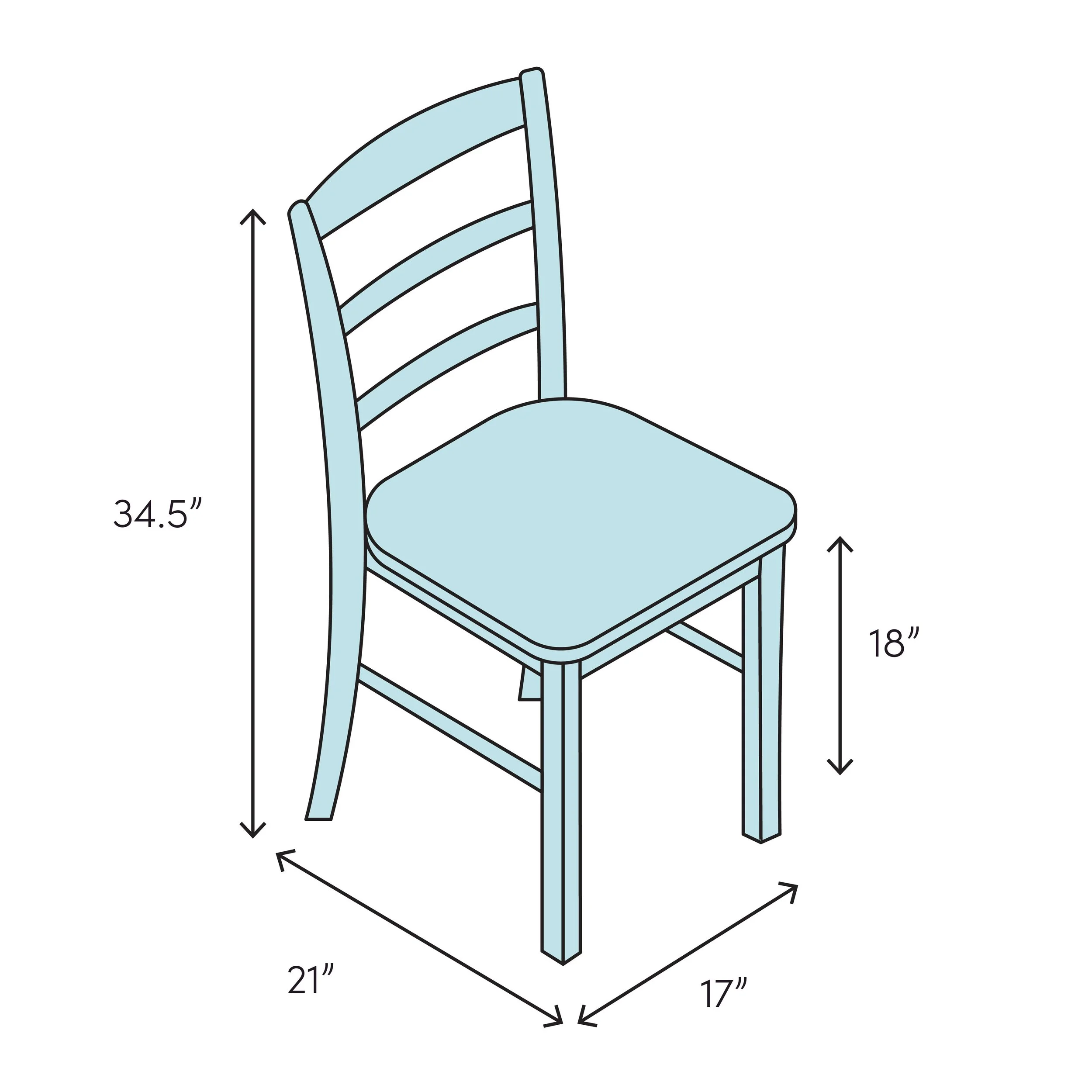 Additional Details: This set includes two upholstered side chairs made from solid beech wood, featuring a classic ladder back design and natural wood grain color variation. The chenille-upholstered seats are foam-filled for comfort, and each chair is non-swivel, has no wheels or casters, and supports up to 350 pounds. For easy maintenance, the linen seat can be cleaned with soap and water.