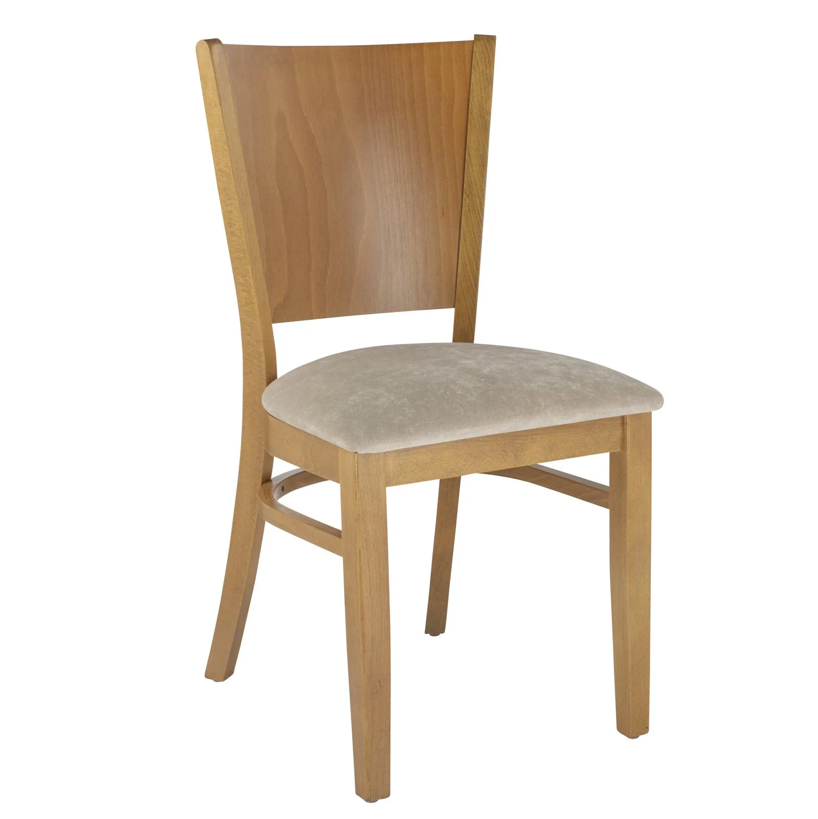 Its subtle grain patterns and warm finish exude timeless charm, while the gently flared back and tapered legs add just the right touch of refinement. Blending classic craftsmanship with modern comfort, this piece fits effortlessly into rustic kitchens, modern lofts, or cozy cafés.