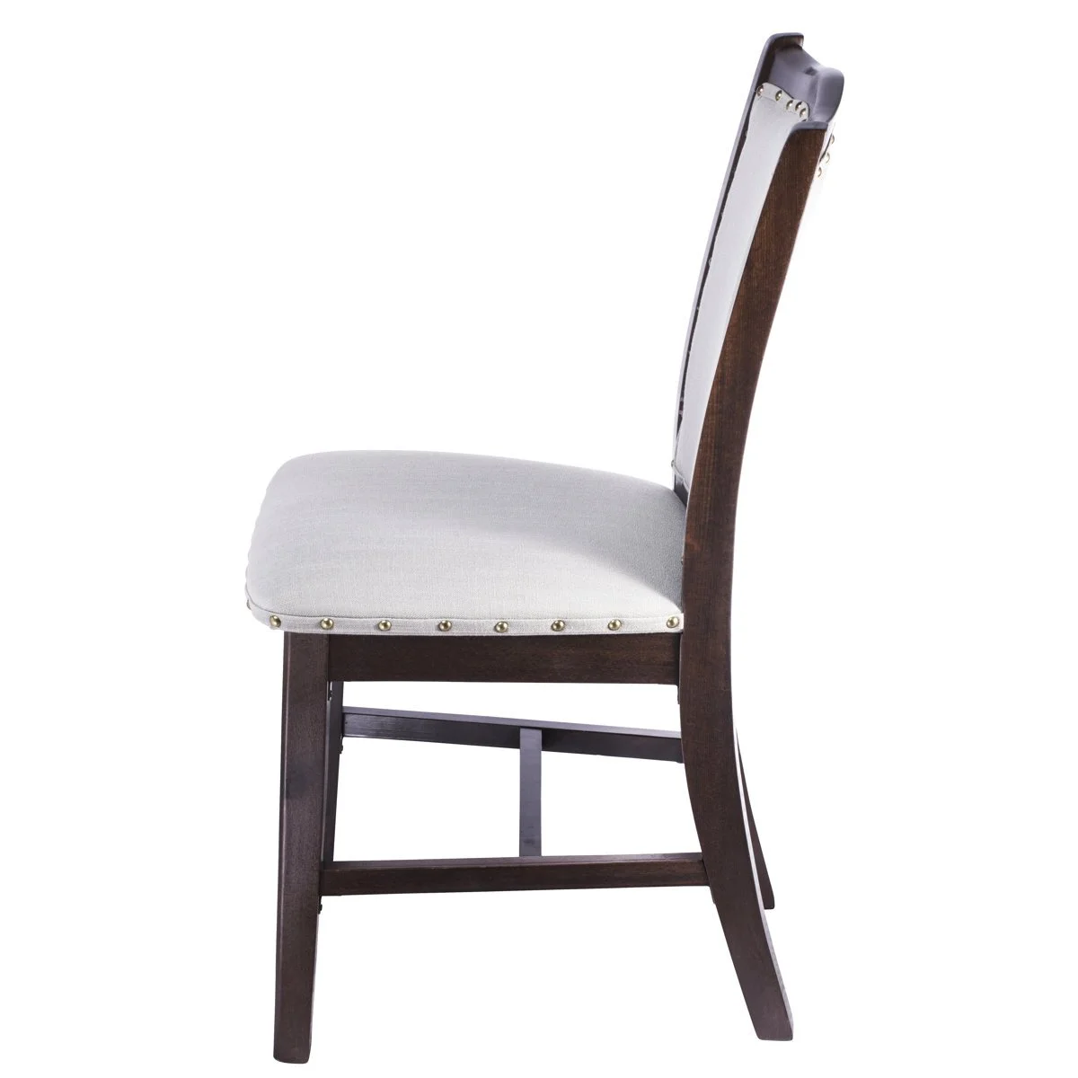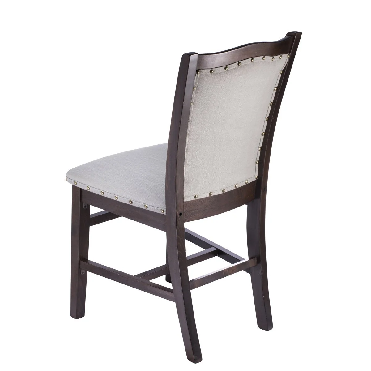 Where vintage charm meets tailored sophistication, this beautifully upholstered side chair brings graceful style to any room. The subtly arched backrest, framed in rich wood with antique-style nailhead trim, makes a statement that’s both bold and timeless. Soft, linen-like upholstery wraps both the seat and back, offering a comfortable perch for dinner parties, quiet mornings, or everything in between.
